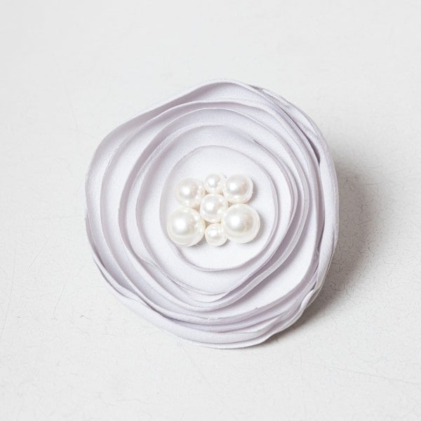 センター部分に大小のパールビーズを散りばめた、華やかなフラワーコサージュ。立体感のあるデザインで存在感を放ちます。柔らかな色合いに仕上げた上品エレガントなデザイン。背面にはクリップもついており、ヘアアレンジなどにもお使いいただけます。