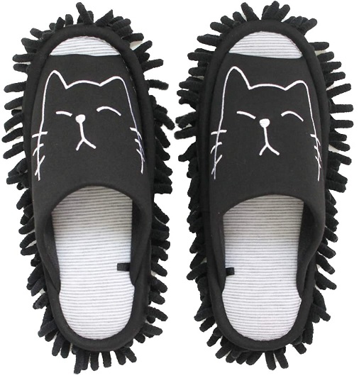 スリッパ モップスリッパ 洗える ネコ刺繍(ブラック)BK お掃除スリッパ 室内履き ルームシューズ マイクロファイバー 猫 ねこ キャラクター おそうじくん かわいい おしゃれ ウォッシャブル モップ付き アニマル 動物 沖縄不可