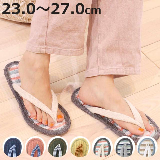 スリッパ コットンサンダル プレーン ボーダー 2サイズ ハンドメイド ( ルームサンダル レディース 23〜25cm メンズ 25〜27cm 室内 ルームスリッパ トング サンダル 室内履き 夏用 鼻緒 ルームシューズ おしゃれ 草履 素足 )