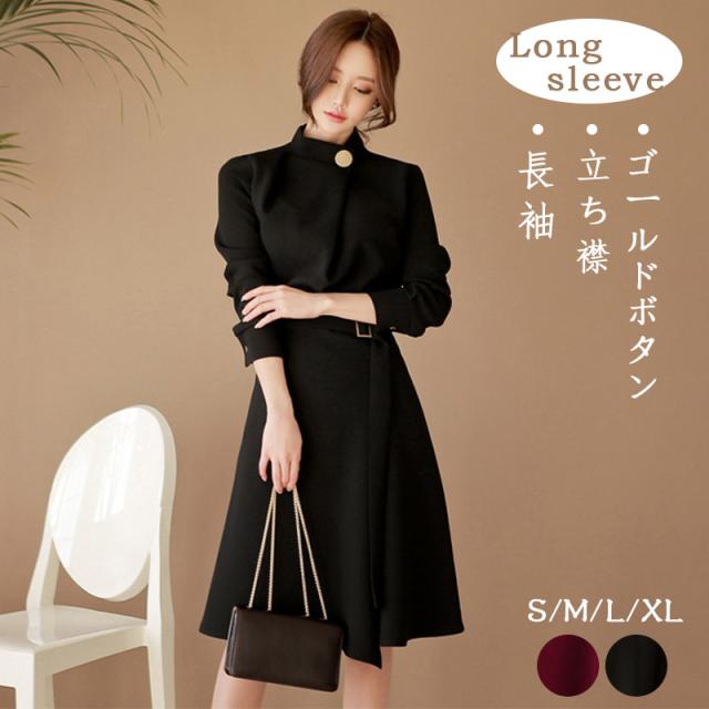 ワンピース 入学式 卒業式 卒園式 成人式 通勤 長袖 立ち襟 おしゃれ レディース ゴールドボタン パーティードレス 結婚式 二次会 入学式お祝い 入学式ドレス 母の日 プレゼント