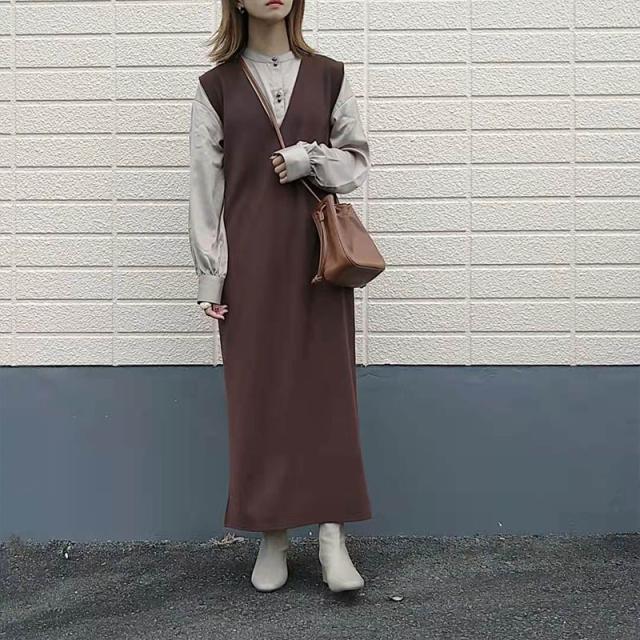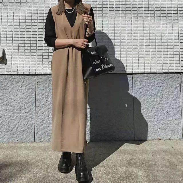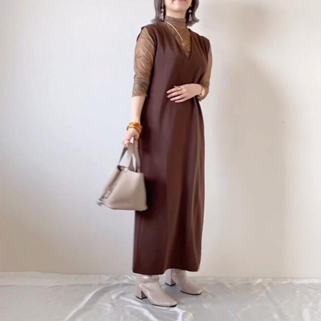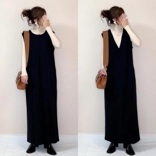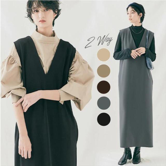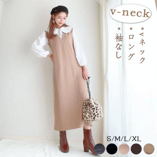 春NEWタイプ発売! ジャンパースカート ロングワンピース 大人 vネック ノースリーブ Iライン きれいめ オフィス 上品 ブラ 母の日