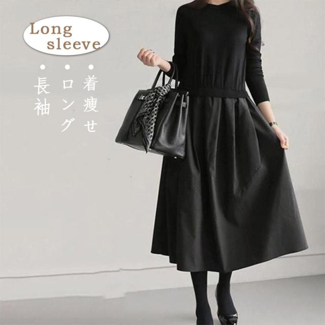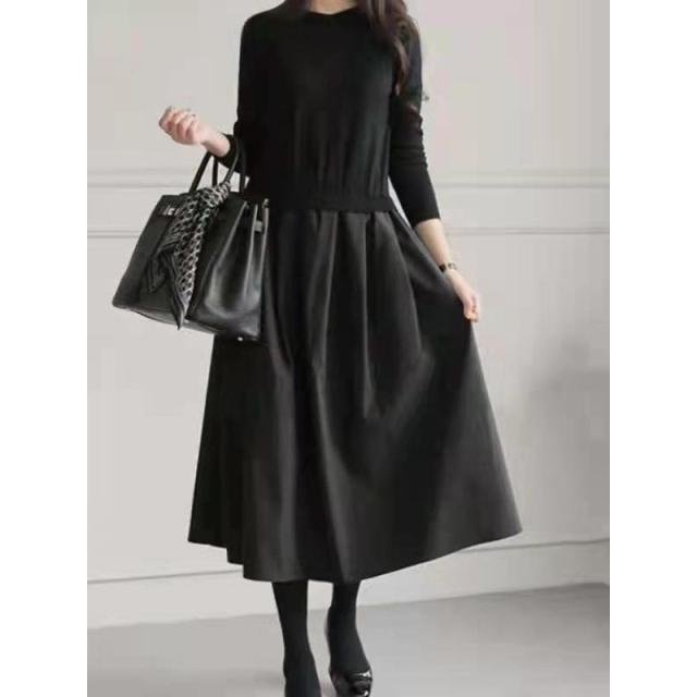 【キーワード】ワンピース ワンピース ロングワンピース 可愛い ロング丈 無地 異素材 切り替え プリーツスカート 長袖 体型カバー おしゃれ ブラックワンピース 長袖ニット ワンピース ロングワンピース ワンピース レディース ロング丈 秋 冬 プリーツスカート 長袖 切り替え 上品 通勤 カジュアル レイヤード風 切り替えワンピース Aライン おしゃれ ブラックワンピース 無地 30代 40代 50代 送料無料 春ワンピース レディースワンピース ママワンピース