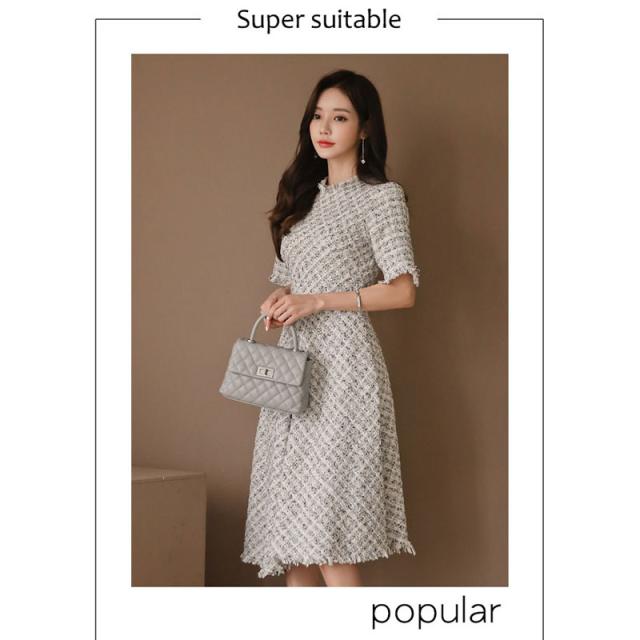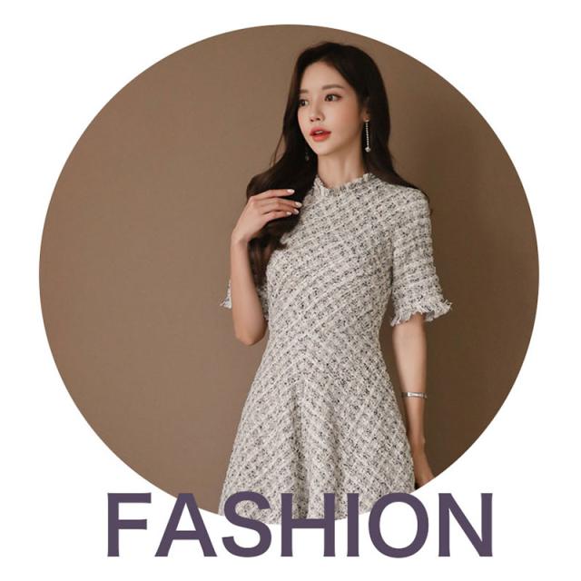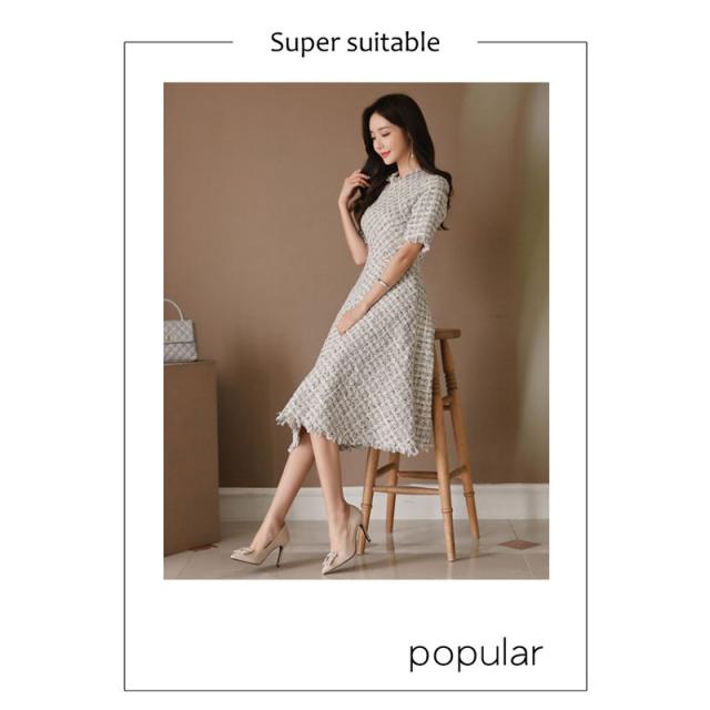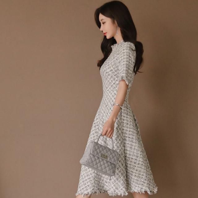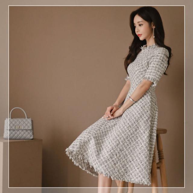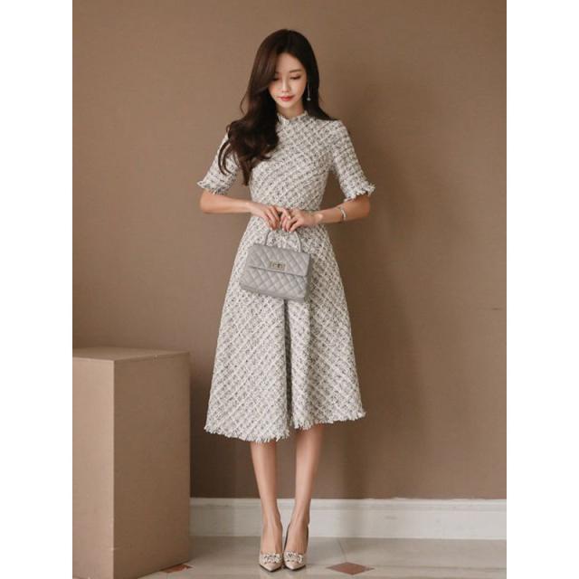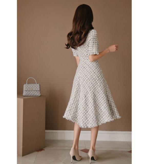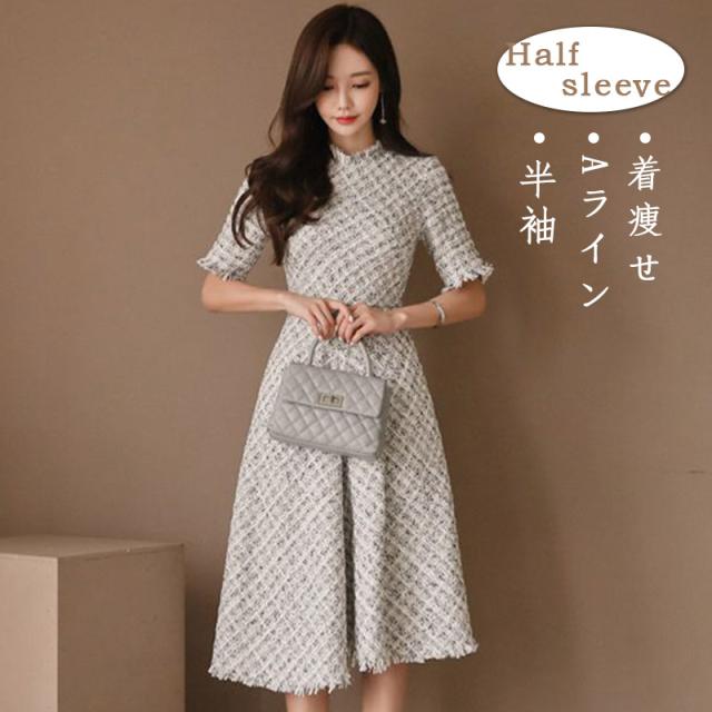 ワンピース 入園式 入学式 結婚式 ツイードワンピース 半袖 フレアワンピース Aライン 上品 ガーリー パーティードレス 女子会 敬老の日