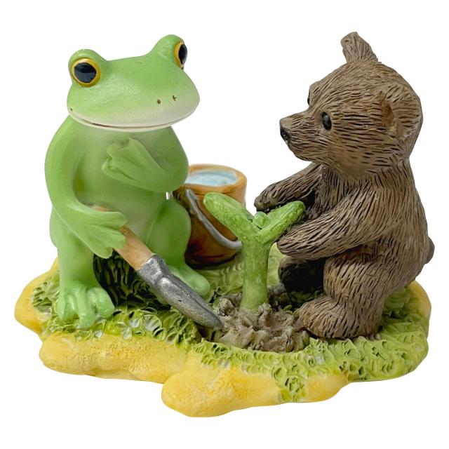 コポー お花を育てるカエルとクマ カエル 置物 ( Copeau 置き物 コポタロウ 玄関 かえる 蛙 グッズ マスコット ミニチュア 雑貨 オーナメント インテリア くま クマ 飾る かわいい 可愛い オブジェ リビング 卓上 机上 小さい )