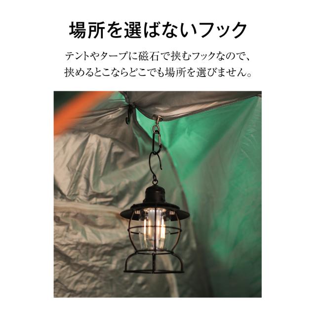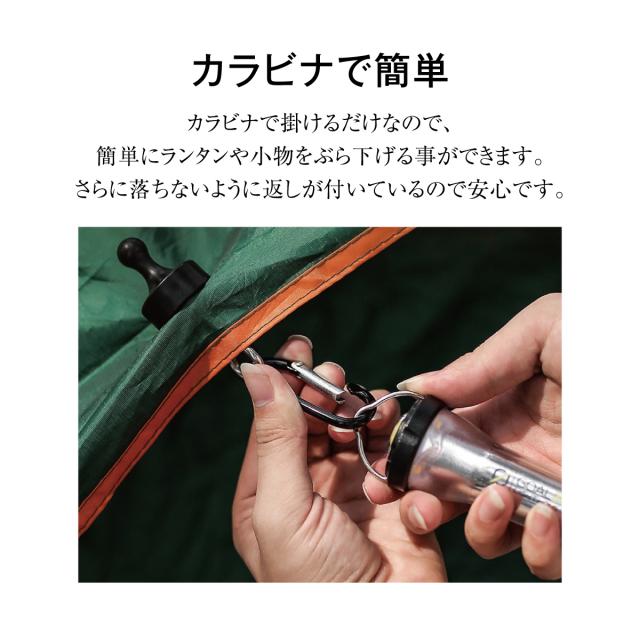 【場所を選ばないフック】テントやタップに磁石で挟むフックなので、挟めるとこならどこでも場所を選びません。