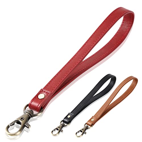 CIBOLA 高級牛革 ストラップ 本革 携帯ストラップ 手首 デジカメ ストラップ 革 金具 スマホケース ストラップ おしゃれ レザー 落下 防止 シンプル ストラップ カメラ 外付け可能 ハンド ストラップ (レッド×光沢アンテ
