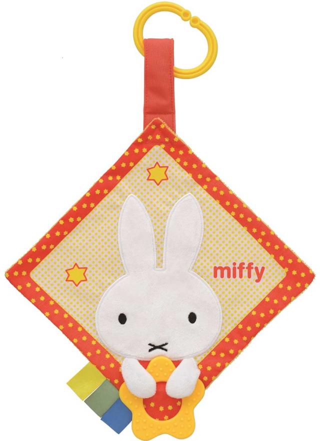 あかちゃんのすきなカサカサの音 カラフルなタグ かみかみ歯がため フック型クリップでベビーカー、ベッド、車などに取り付け可能 やわらかいミッフィーは手触りの良い布素材 裏面はパイル地 手洗いOK!