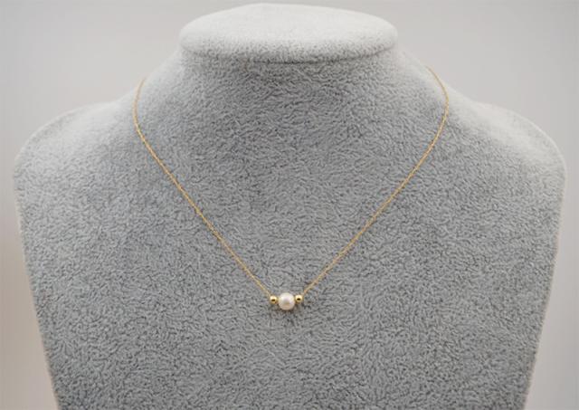 約6mmの淡水パールに約1mm弱の極細チェーンが