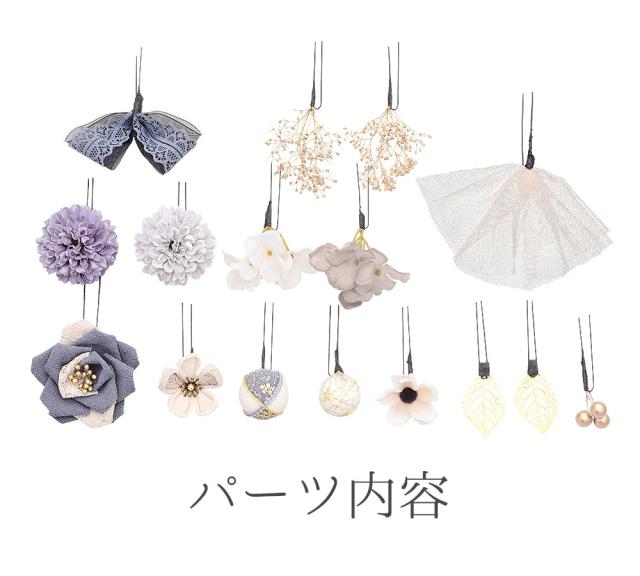 成人式 振袖 髪飾り 16点セット つまみ細工 振袖用 髪飾りセット リボン Uピン ヘアアクセサリー 和装 アクセサリー グレー 紫 前撮り 七五三 753 浴衣 袴 入学式 卒業式 結婚式 ブライダル 披露宴 和風 洋風 アレンカ Arenca