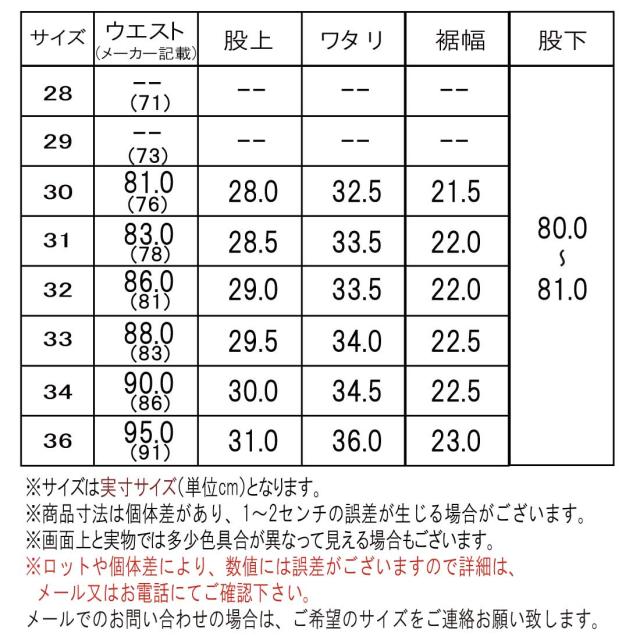 (ヌードサイズ表記とは数値が違いますので、お手持ちのパンツと測り比べてご注文ください。)