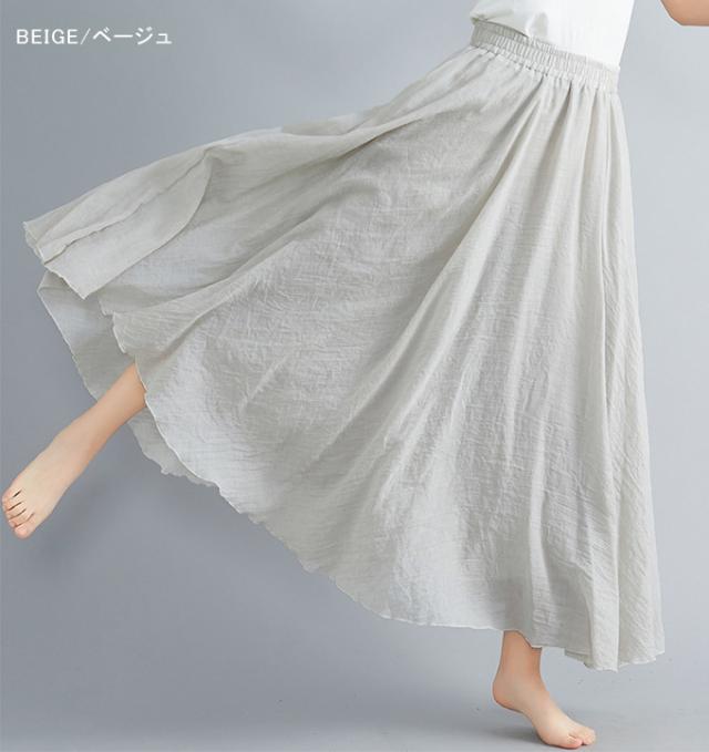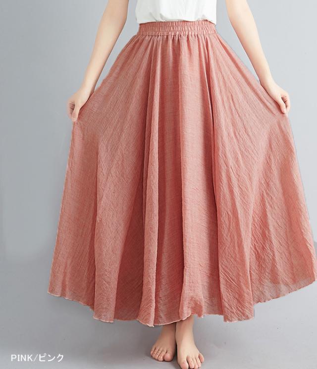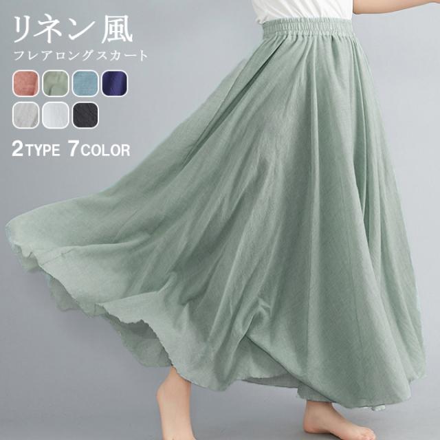 【500円OFFクーポン対象商品】 karei フレアロングスカート フレア ロング丈 リネン風 ナチュラル 11sl2342