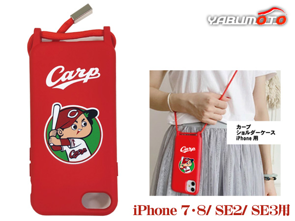 カープ公認デザイン ショルダーケース iPhone SE2 SE3 7 8 シリコン ロングストラップ付 メール便 送料無料
