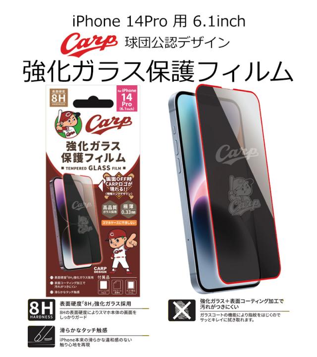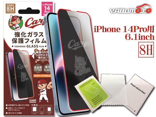 カープ公認デザイン 強化ガラス 保護フィルム iPhone 14Pro 6.1インチ 8H 極薄 高品質 コーティング加工 メール便 送料無料