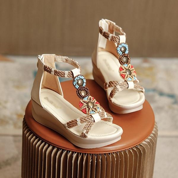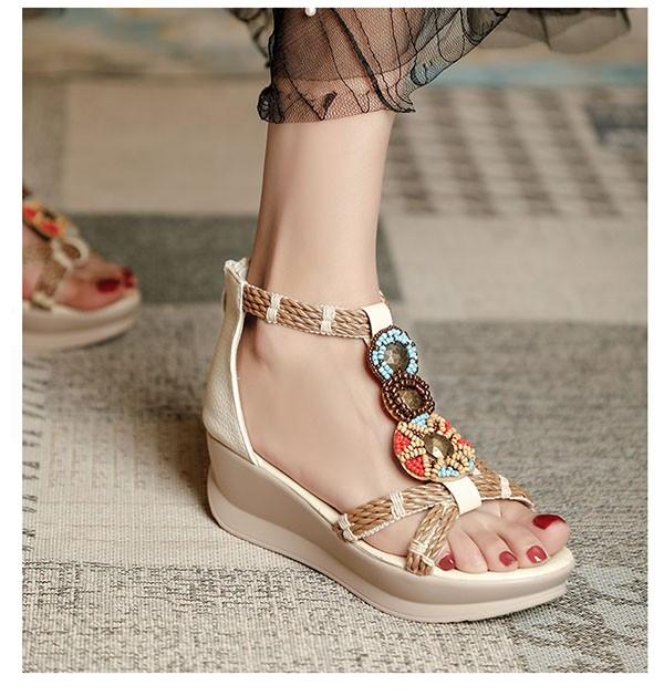 【レビュー投稿で+5%還元】ウェッジソール 厚底サンダル ビーチサンダル ストーム ヒール5.5cm ベージュ ファッション リゾート 旅行 リゾートサンダル 沖縄 ボヘミアン 普段履き サマー カジュアル かわいい 夏 シかかとあり 小さいサイズ 22.0/22.5/23.0/23.5/24.0/24.5