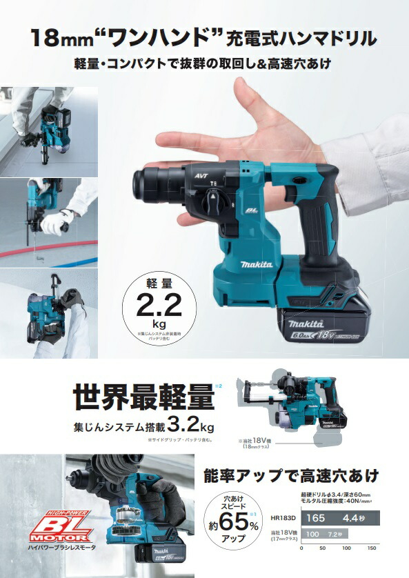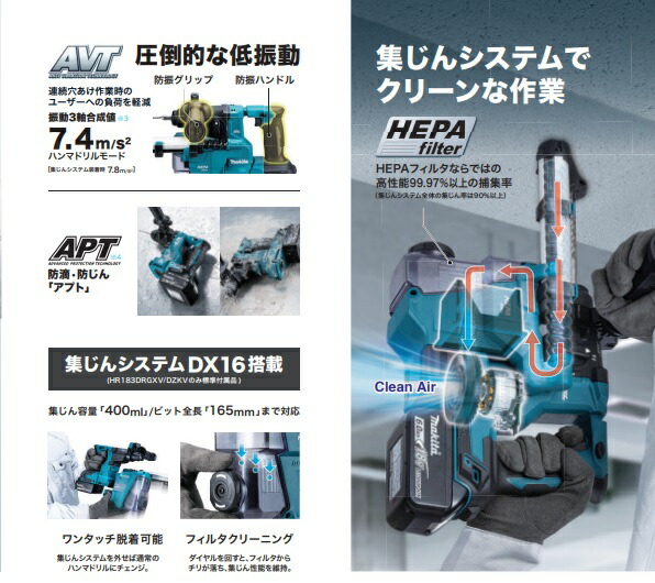 (マキタ) 18mm 充電式ハンマドリル HR183DRGX 集じんシステム別売 バッテリBL1860Bx2本+充電器DC18RF+ケース付 18V対応 makita