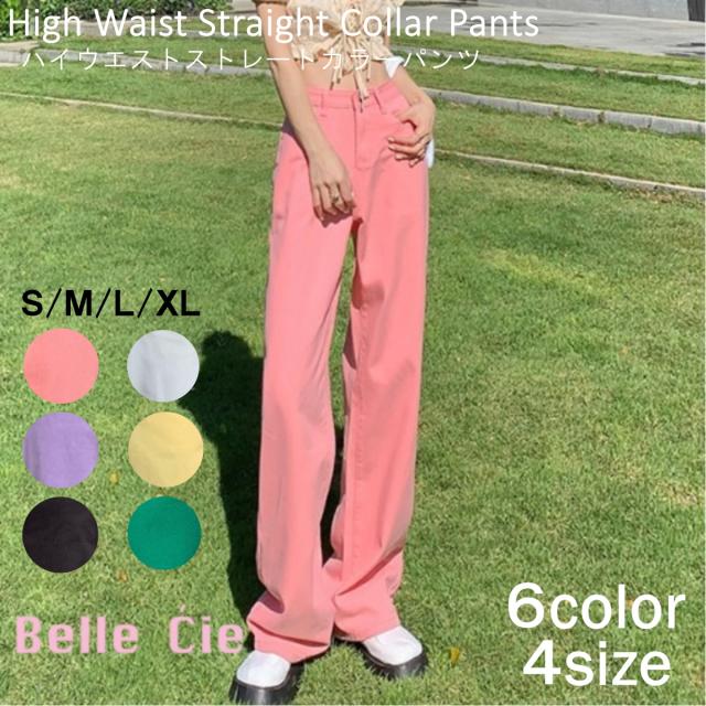 カラーパンツ レディース ストレートパンツ ズボン パンツ 長パンツ チノパン カジュアル おしゃれ ハイウエスト チノパンツ 脚長効果 ゆったり 綿 スタイルアップ 韓国ファッション バギーパンツ 韓国 服 太め ツイル 大人かわいい ピンク パープル 黒 白 緑 グリーン 黄色