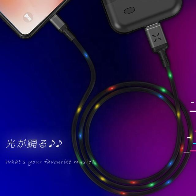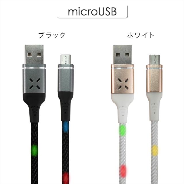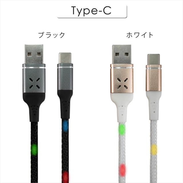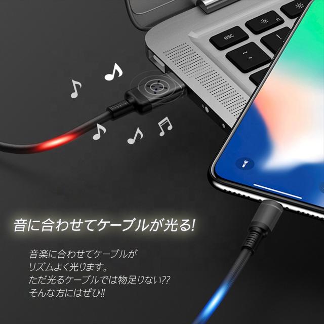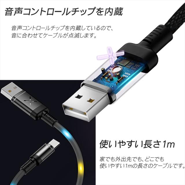 音で光る Type-C ケーブル microUSB ケーブル 光る 充電ケーブル 音に合わせて光る 光るケーブル 1m ブラック ホワイト サウンドコントロールボイスコントロール Android スマホ充電 LED 光が躍る