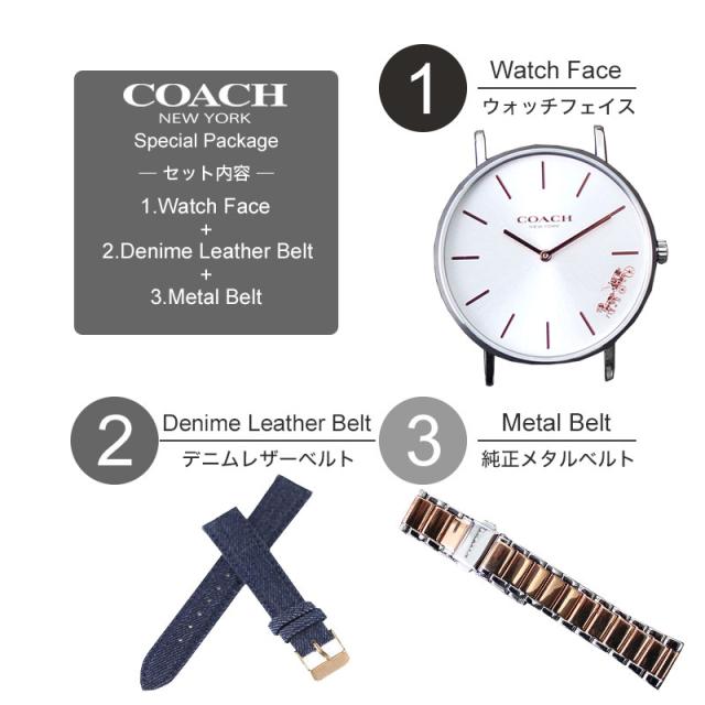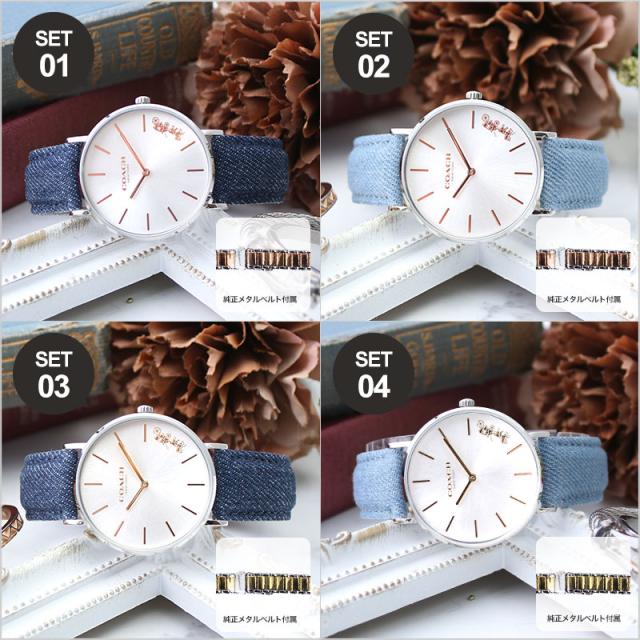【世界に一つだけの風合い】コーチ 腕時計 レディース ブランド COACH 時計 コーチ時計 ペリー 女性 彼女 妻 嫁 奥さん 恋人 プレゼント 人気 おしゃれ デニム レザー ベルト メタルベルト ピンクゴールド ローズ ゴールド 華奢 薄型 かわいい カジュアル 限定セット