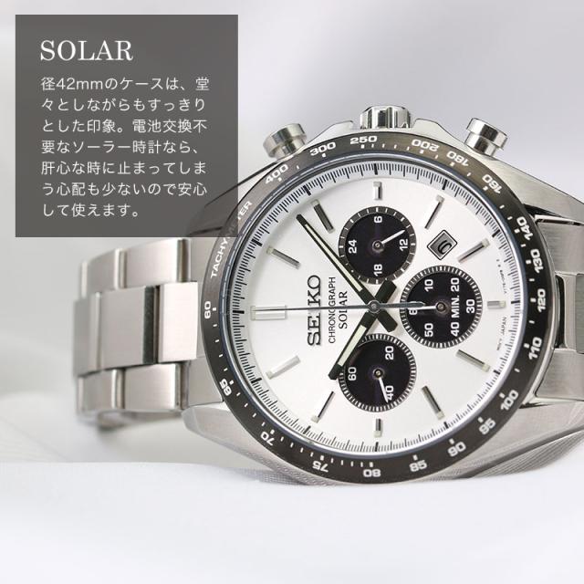 【お仕事用にはこれ】セイコー ソーラー 時計 セレクション SEIKO SELECTION 腕時計 クロノグラフ 男性 向け メンズ パンダクロノ パンダダイヤル 白黒 人気 定番 おすすめ おしゃれ かっこいい ブランド 仕事 ビジネス 社会人 就職 祝い 彼氏 夫 誕生日 プレゼント ギフト