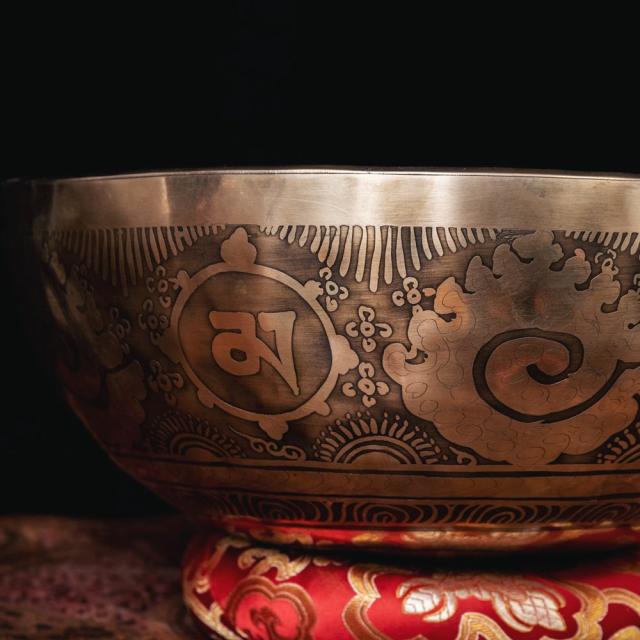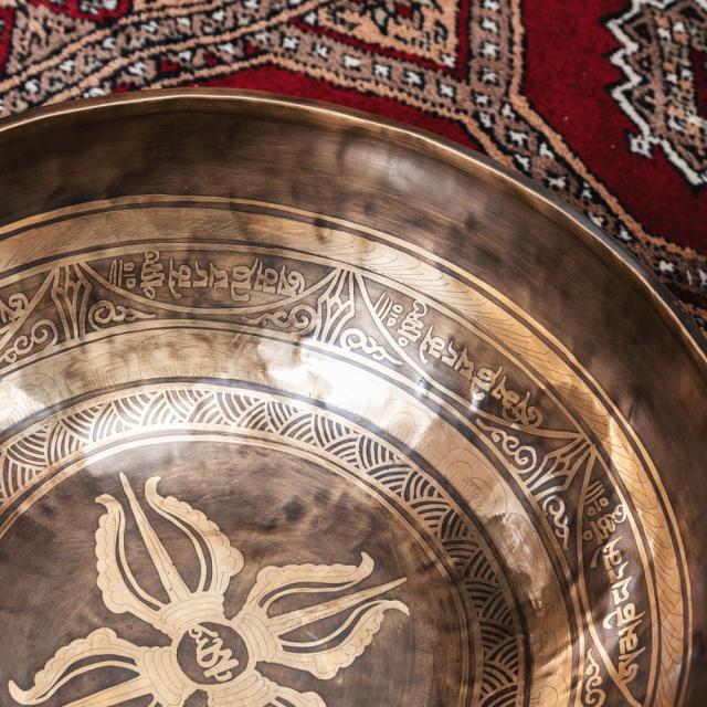 美しい音色と装飾が特徴的な、チベタンアンティックシンギングボウル。