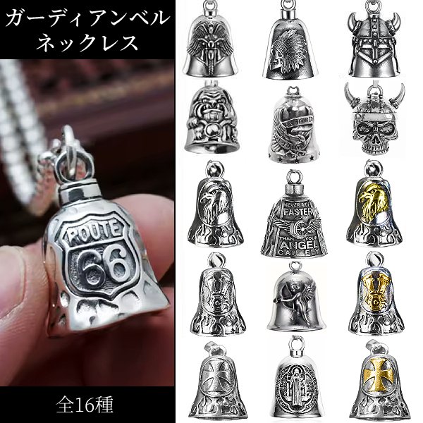 オートバイ バイク バイカー ハーレー ガーディアンベル 鈴 ベル グレムリンベル ネックレス 魔除け お守り アクセサリー ツーリング スカル クロス エンジン ホイール イーグル ホーク エンジェル クロス ラッキー チャーム