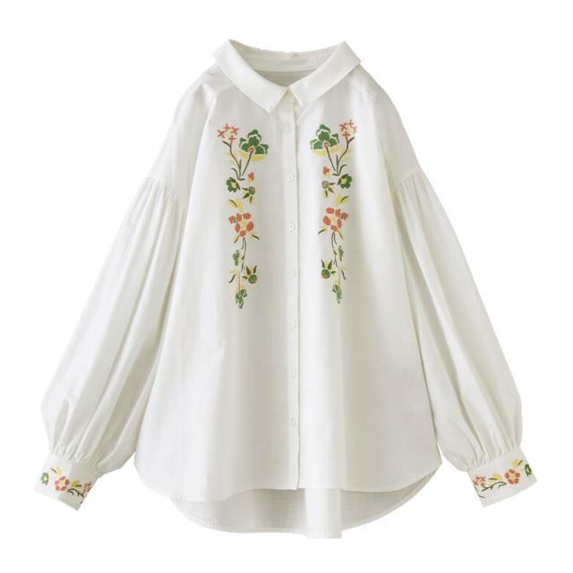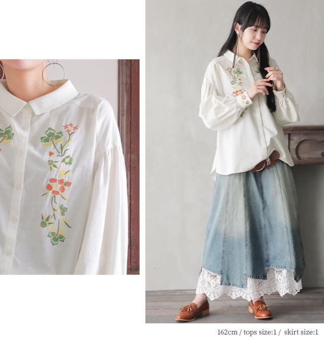 23日最大1200円クーポン 【送料無料】『レトロな雰囲気溢れるお洒落女子コーデ2点SET』 【メール便不可】【50】[2点セット 2024 レディース ブラウス シャツ 長袖 トップス 花柄刺繍 デニムスカート レースペチ cjz0665]※返品・交換不可※