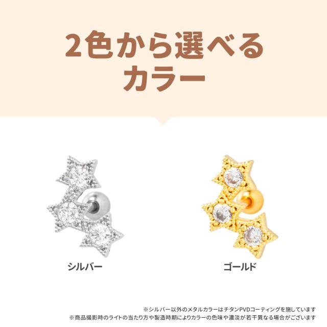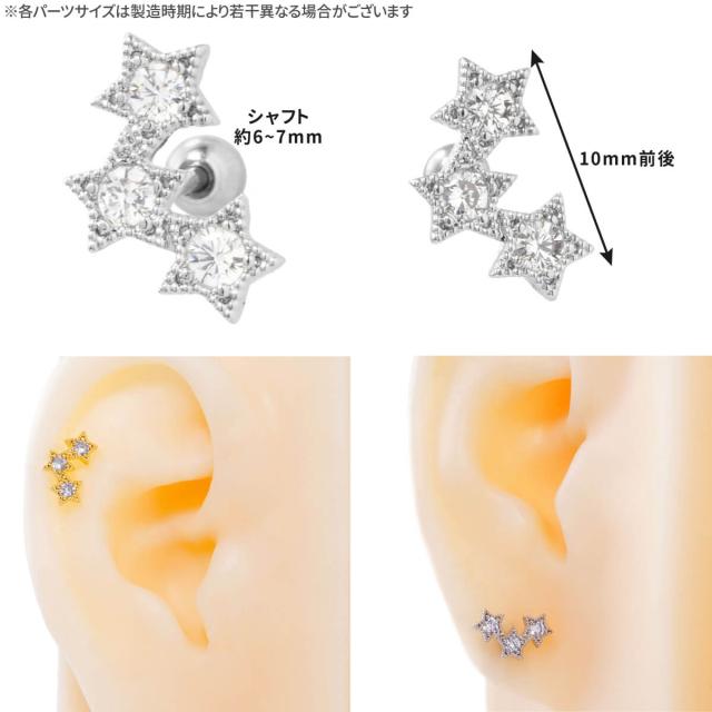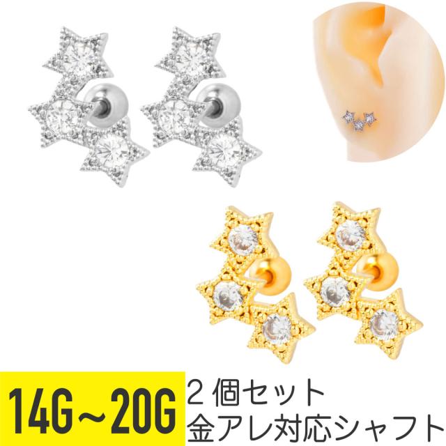 2個セット 3連 スター ジュエル ストレートバーベル 14G 16G 18G 20G サージカルステンレス ヘリックス 軟骨ピアス ボディピアス 星