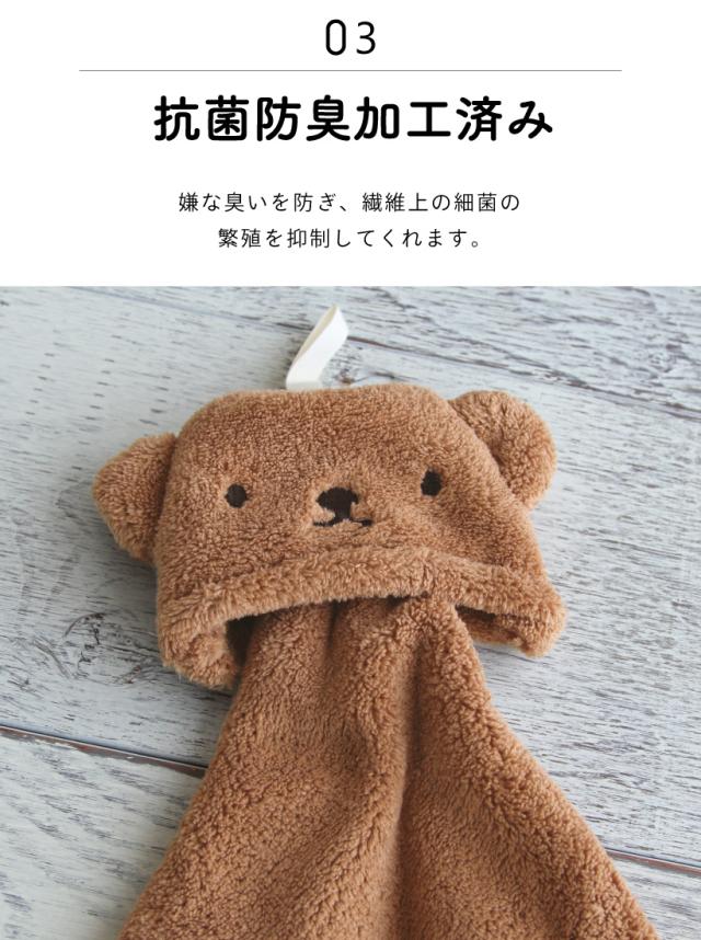 フックなどに引っ掛けてご使用いただける便利なループ付きタオルです。 コンパクトになるので持ち歩きやすいです。 丸めたときもかわいい♪ ふわふわマイクロファイバーで気持ちよくお使いいただけます。 嫌な臭いを防ぎ、繊維上の細菌の繁殖を抑制する抗菌防臭加工済み。再生ポリエステルを使用しています。