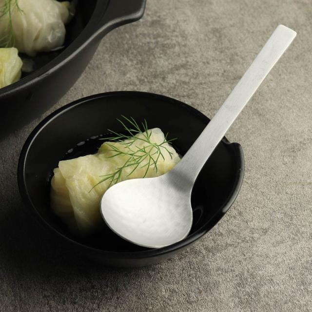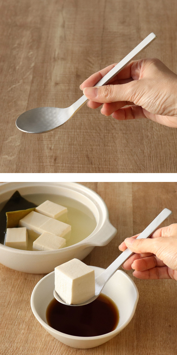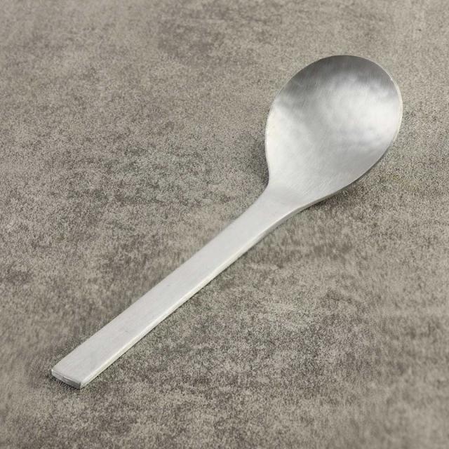 お鍋や湯豆腐の取り分けに便利なアルミニウム製の卓上お玉です。すくう部分が深すぎない形状と小さめのサイズは、煮物やメインディッシュを取り分けるサービングスプーンとしてもお使いいただけます。