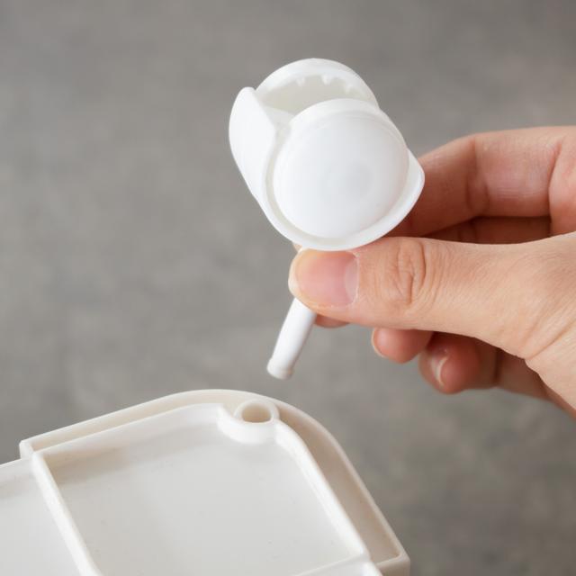 フタには留め具が付いているので、中身が落ちる心配もなく、しっかりとフタを閉めることができます。