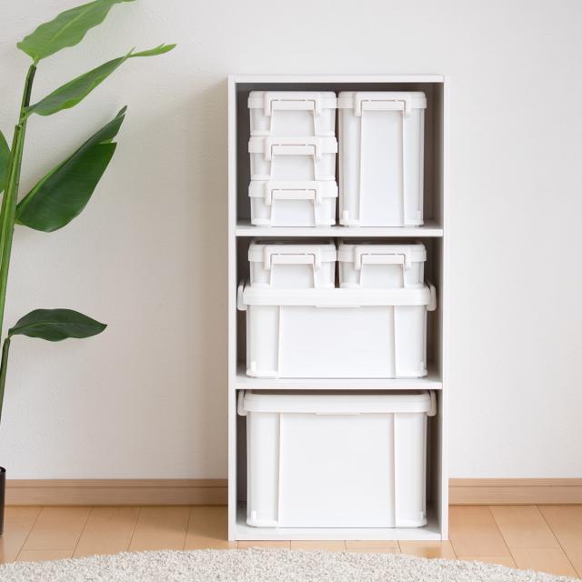 一般的なカラーボックスにぴったりと収まります。39Lサイズは、カラーボックス1段にぴったり収まるサイズです。同シリーズのボックスと合わせて収納することもできて、見た目もスッキリと見せることができます。