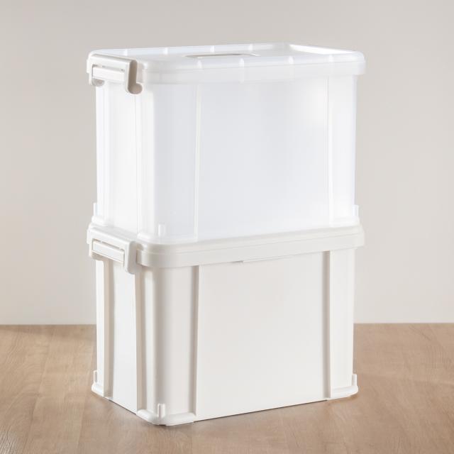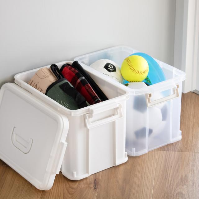 衣類やおもちゃ、アウトドア用品など、大きめの物も収納できるサイズです。ホワイトは中身が見えず統一感がありスッキリとした印象になります。クリアは中身が程よく透けて収納物を探しやすいです。