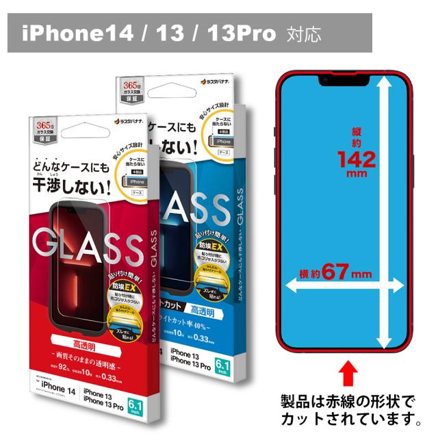 ガラスフィルム 平面保護 高光沢 高透明 クリア ブルーライトカット 干渉レス ケースに 干渉しない iphone14 iphone14pro iphone14 promax 14plus ガラスフィルム 耐衝撃 iphone13 pro max iPhone14 硬度10H 傷に強い 貼り付けガイド 保護フィルム ZS3486IP261 ラスタバナナ