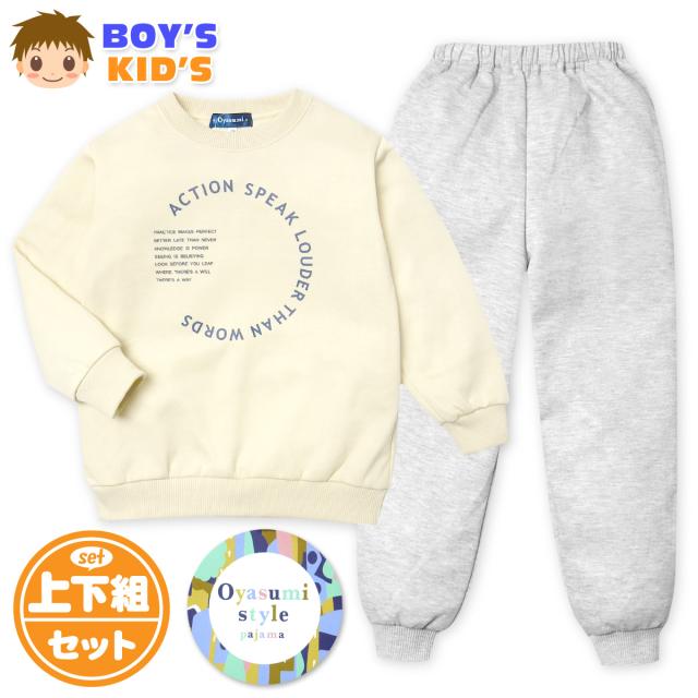 【送料無料】男児 キッズ ダンボールニット 長袖 パジャマ 上下組 スウェット 丸首 子供服 男の子 my-0068a-be【メール便対応】