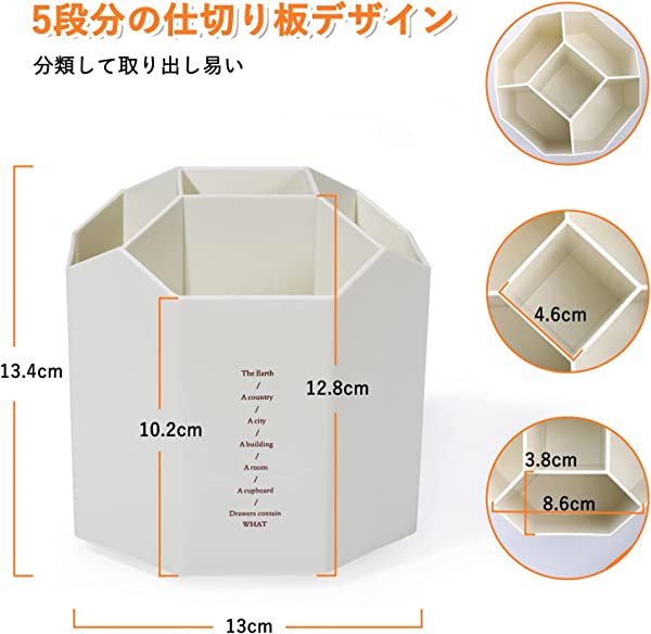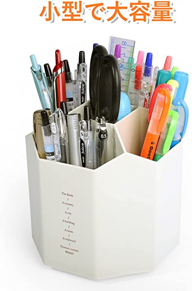 ペン立て 360度回転 ペンスタンド 5グリッド ペンホルダー 大容量 鉛筆立て 回転 鉛筆たて 多機能 収納ケース プラスチック 小物分類 机上収納 小物入れ オフィス 便利 卓上文房具 オフホワイト