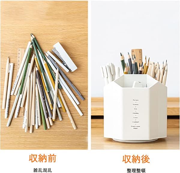 【大容量な仕切りデザイン】:仕切りのデザインにより、五つの独立したコンパートメントがあります。ペン、鉛筆、マーカー、定規、消しゴム、ペーパークリッパなどの文房具の分類収納は最適です。口紅などの化粧品収納にもご利用できます。約145本の鉛筆が収納でき、大容量で、テーブル上小物の整理整頓は効率的です。