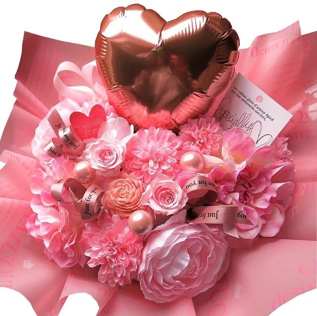 プリザーブドフラワー ギフト 結婚記念日 プレゼント ハート入り 花束風 枯れないプリザーブドフラワー入り ピンクいっぱい ハートバルーン入りギフト
