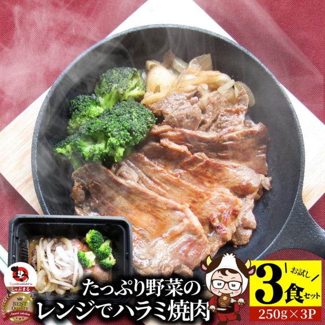レンジで牛ハラミ焼肉 3食(250g×3) 低糖質 たっぷり野菜のハラミ焼肉 やきにく ハラミ タレ 赤身 はらみ 秘伝 焼肉セット 焼肉 ランキング1位 惣菜 お家焼肉 バーベキュー 肉 食材 セット 冷凍 惣菜 あす着 業務用 温めるだけ レンチン 冷食 お肉の しゃぶまる
