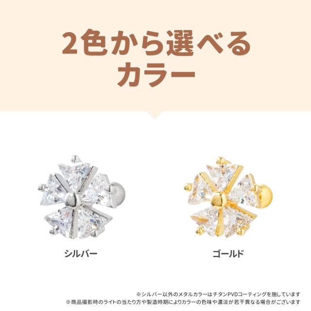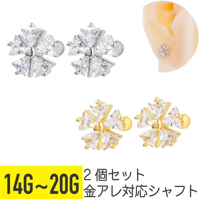 2個セット トライアングル ジュエル フラワー ストレートバーベル 14G 16G 18G 20G サージカルステンレス ヘリックス 軟骨 ボディピアス