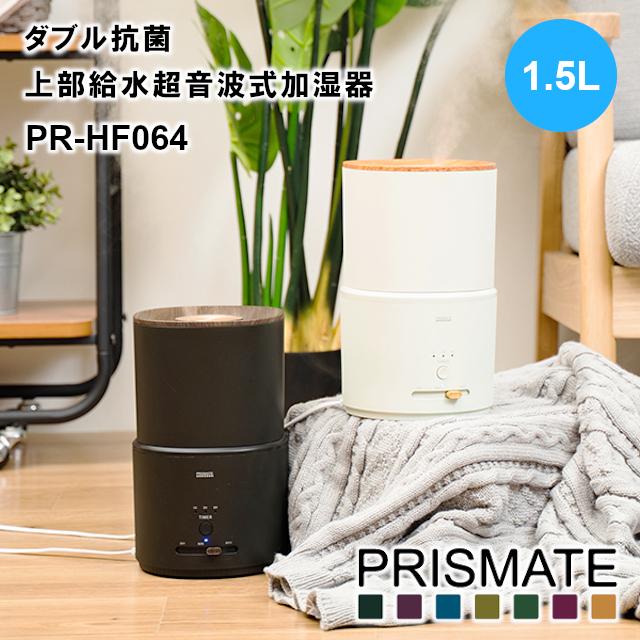 【PRISMATE】キレイなミストで加湿する ダブル抗菌 上部給水超音波式加湿器 1.5L PR-HF064【プリズメイト 上部給水式 加湿器 抗菌 オフタイマー付 アロマ対応 ミスト ギフト 母の日 父の日 敬老の日 クリスマス Xmas】