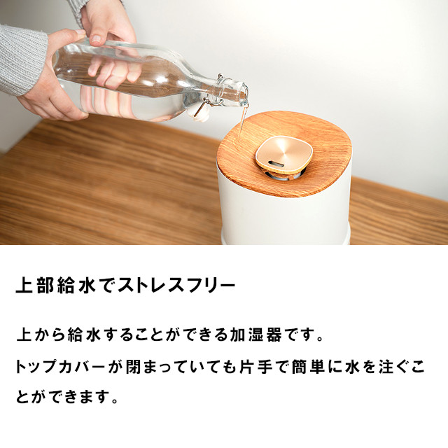 タンクとミストをダブルで抗菌。ラクラク上部給水に、お好きな香りをのせて。
