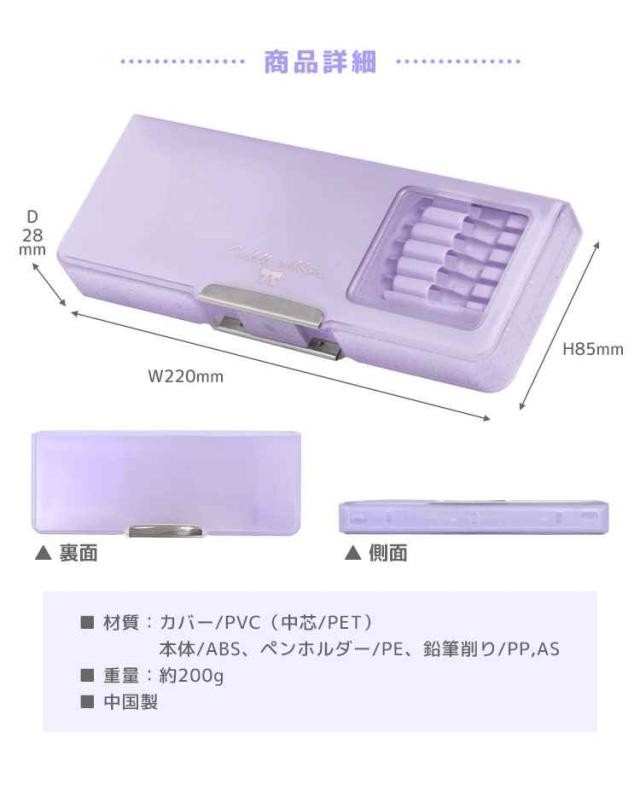 カバー/PVC(中芯/PET)、本体/ABS、ペンホルダー/PE、鉛筆削り/PP,AS