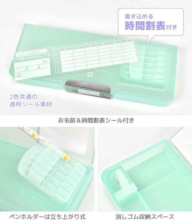 筆箱 小学生 女の子 箱型 ペンケース ふでばこ 箱型 韓国 クリア 小学校 一年生 女子 かわいい おしゃれ 透明 無地 コンパクト 軽量 両面開き マグネット 入学 準備 新学期 筆記用具 鉛筆 ホルダー 鉛筆削り 付き 子供 キッズ シンプル 紫 ミント 進級 入学祝い プレゼント