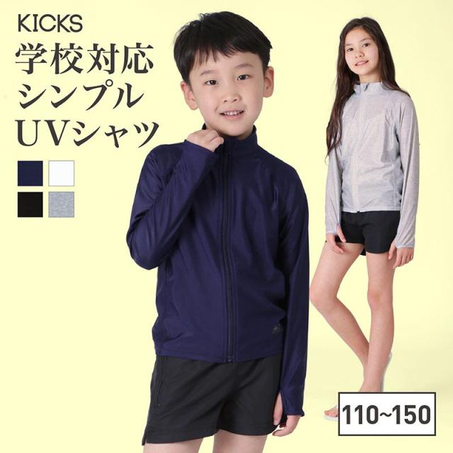 ラッシュガード キッズ 長袖 フードなし 学校対応 スクール水着 UVカット 紺 ネイビー 黒 男の子 女の子 小学生 幼稚園 スイミング スクール 授業 プール 海 海水浴 水遊び KJR-300