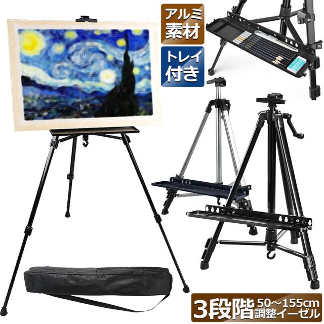 イーゼル 折りたたみ アルミ 製 イーゼル 55 - 155cm 折り畳みイーゼル イーゼル スタンド 絵画スタンド 高さ調節3段階 展示 絵画 画材 画板 装飾 看板 スケッチ 描画 コンパクトに持ち運び 収納袋付き