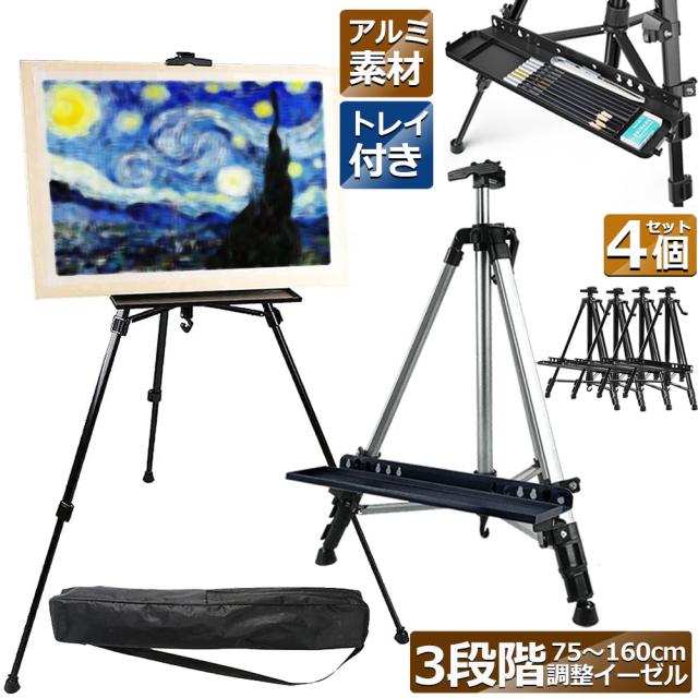 イーゼル 折りたたみ アルミ 製 4個セット イーゼル 55 - 155cm 折り畳みイーゼル イーゼル スタンド 絵画スタンド 高さ調節3段階 展示 絵画 画材 画板 装飾 看板 スケッチ 描画 コンパクトに持ち運び 収納袋付き