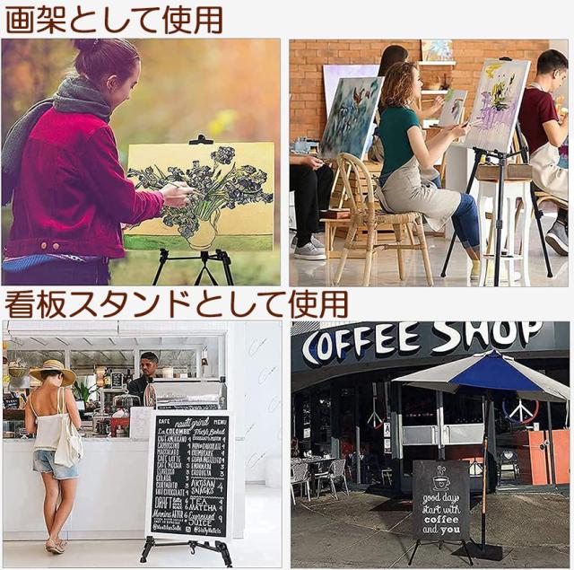 【持ち運が便利】アルミニウム製で軽量、持ち運びやお使いにも便利です。持ち運びに便利な収納バッグがついているので、屋外で絵画が楽しめます。 絵描きだけでなく、お店の看板やボードのスタンドにもなれます。
