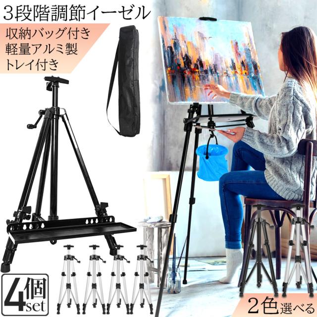 イーゼル 折りたたみ アルミ 製 4個セット イーゼル 55 - 155cm 折り畳みイーゼル イーゼル スタンド 絵画スタンド 高さ調節3段階 展示 絵画 画材 画板 装飾 看板 スケッチ 描画 コンパクトに持ち運び 収納袋付き
