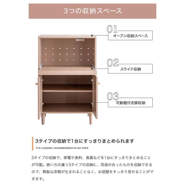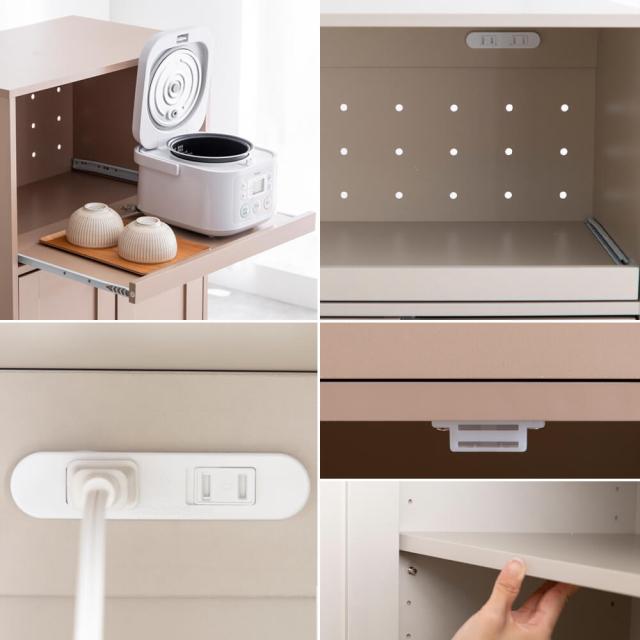 スライド式の棚とコンセント付きなので、使いやすさも抜群です。