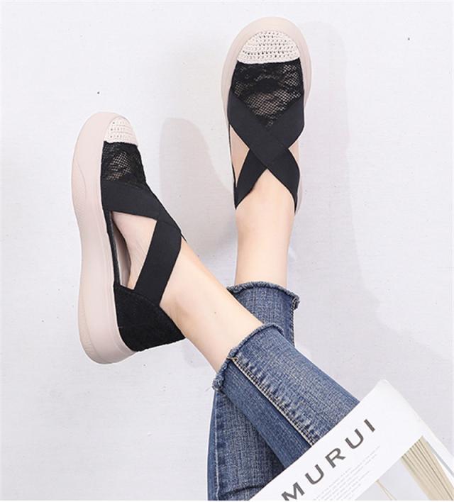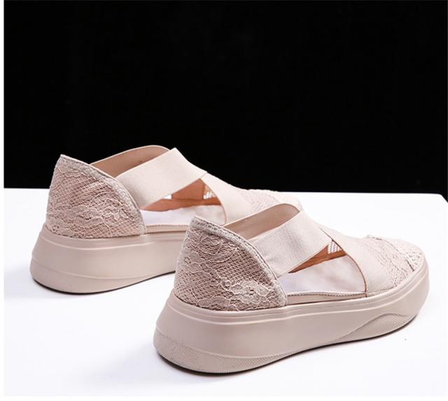【一部当日発送】サンダル レディース ゴムフィットサンダル レース スニーカー ウェッジソール 厚底サンダル おしゃれ 通気性 疲れない 快適 通気性 美脚 春夏